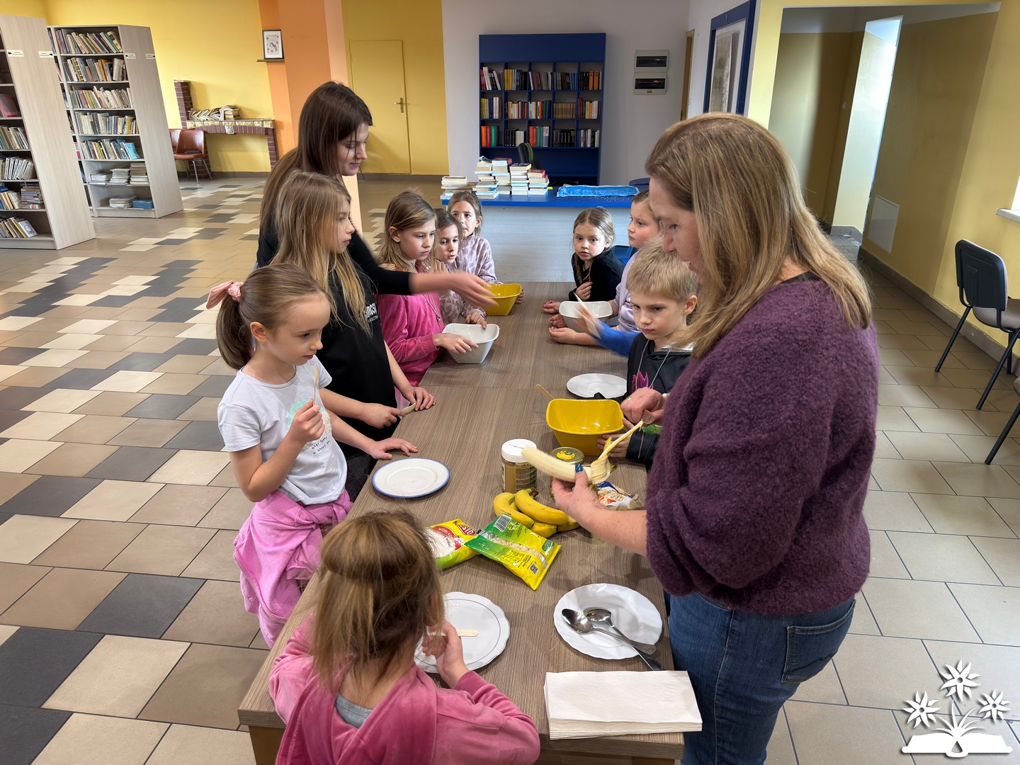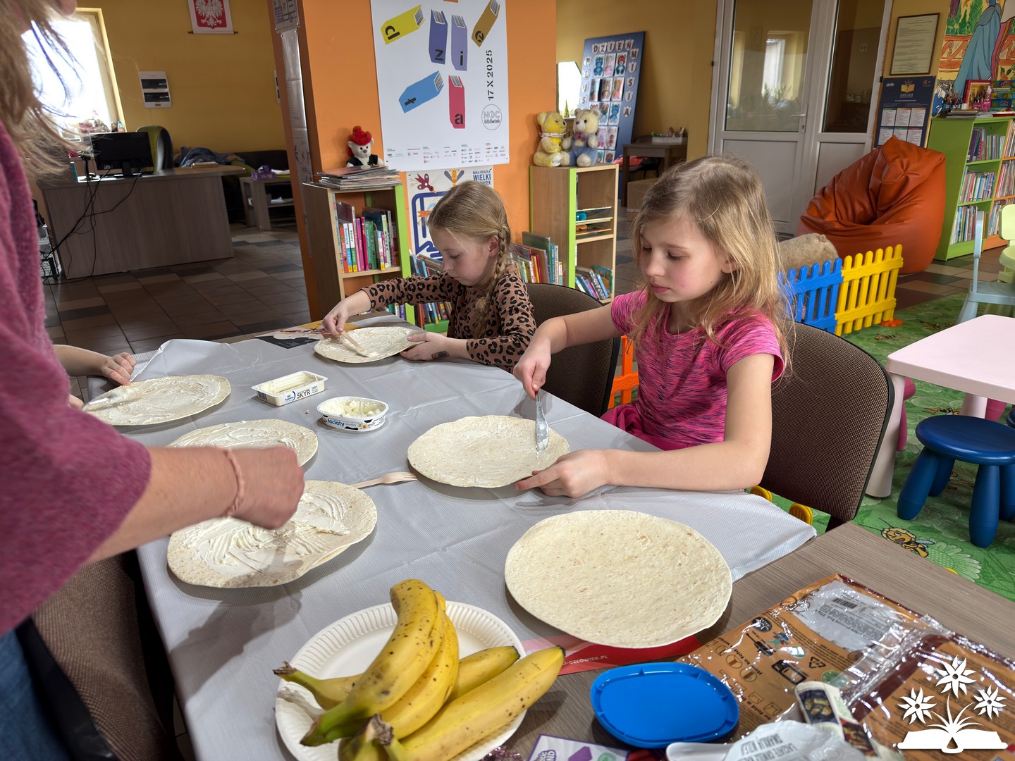 - Zajęcia kulinarne: Podczas spotkań dzieci przygotowywały wspólnie zdrowe i kolorowe śniadania.