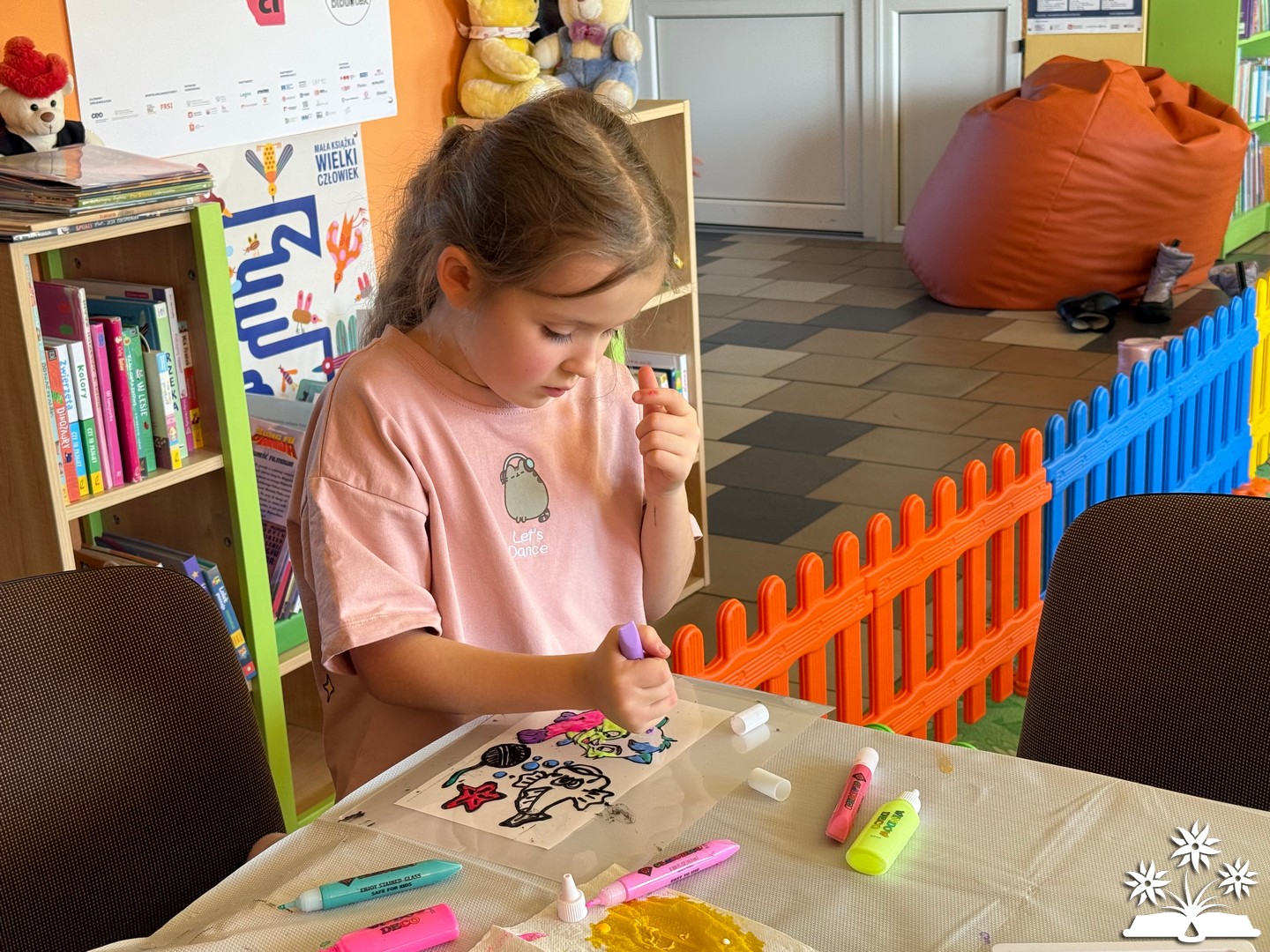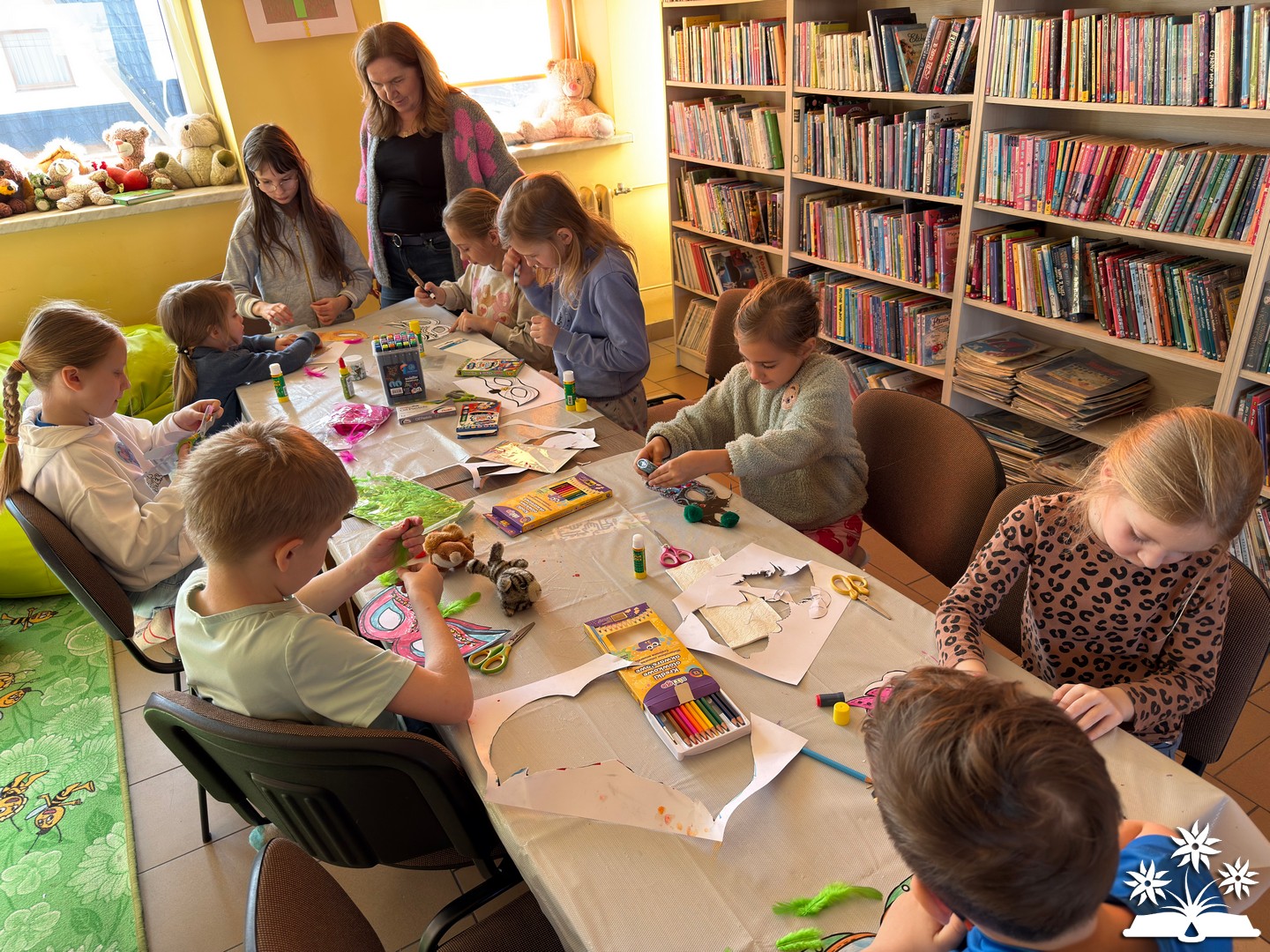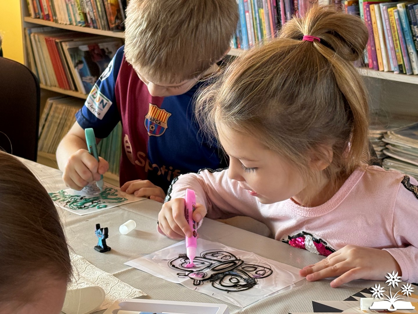 Dzięki temu połączeniu, dzieci opuszczały bibliotekę nie tylko z własnoręcznie zrobionymi pracami, ale też z nowymi historiami w głowach.
