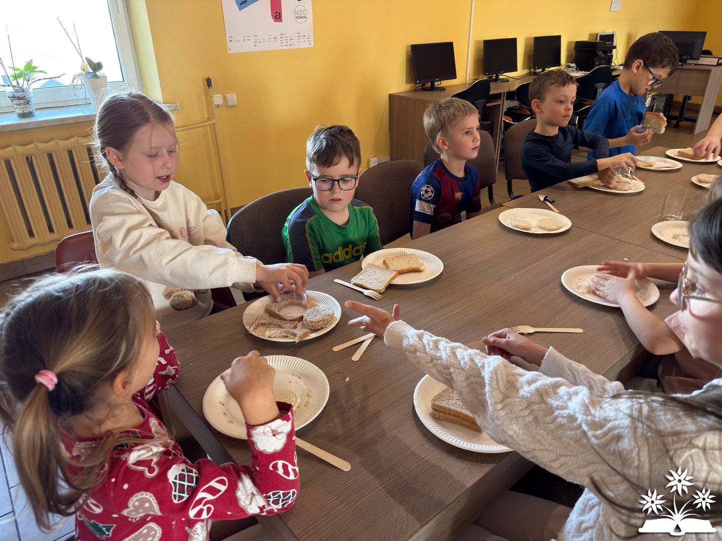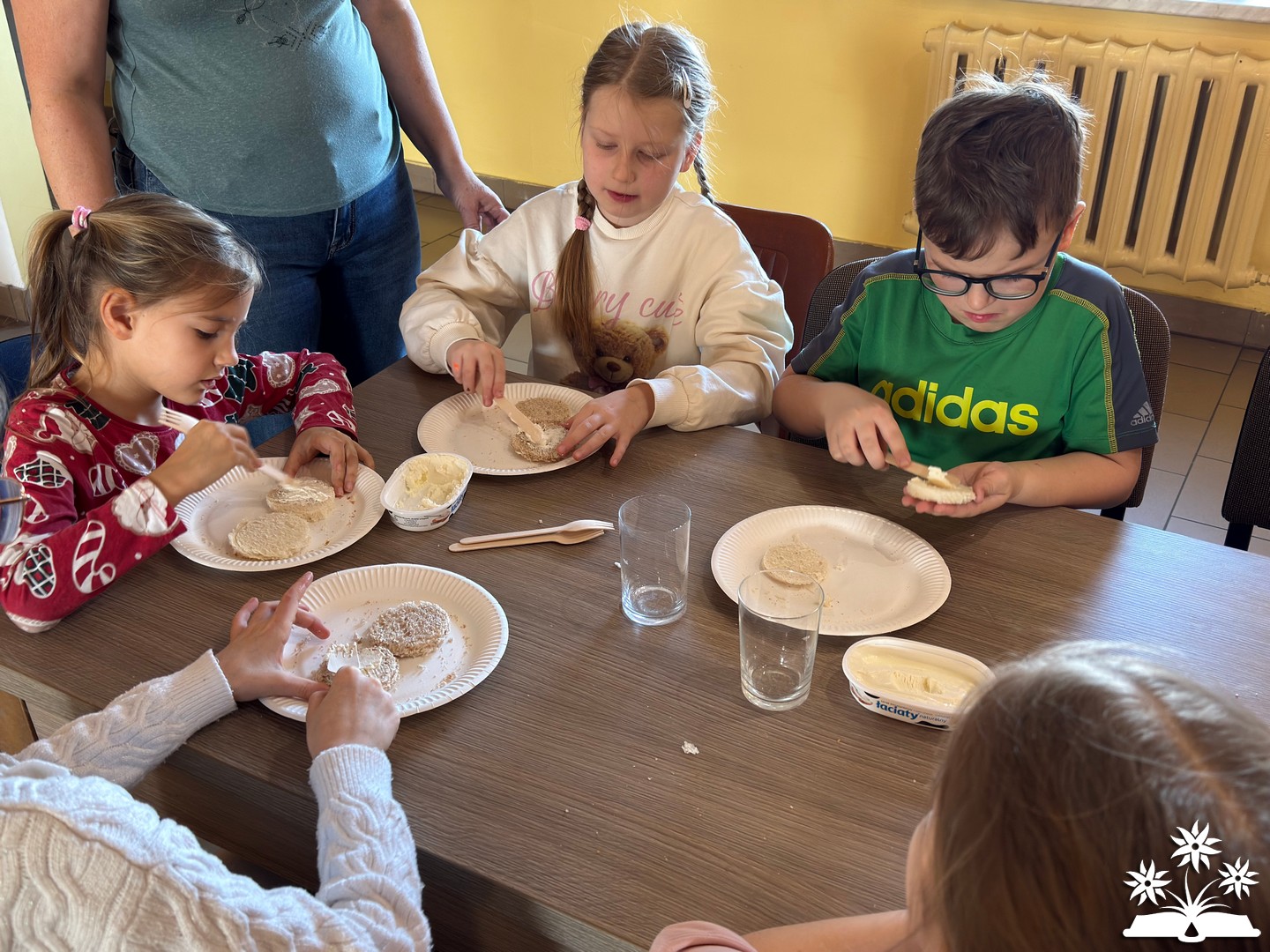 - Zajęcia kulinarne: Podczas spotkań dzieci przygotowywały wspólnie zdrowe i kolorowe śniadania.